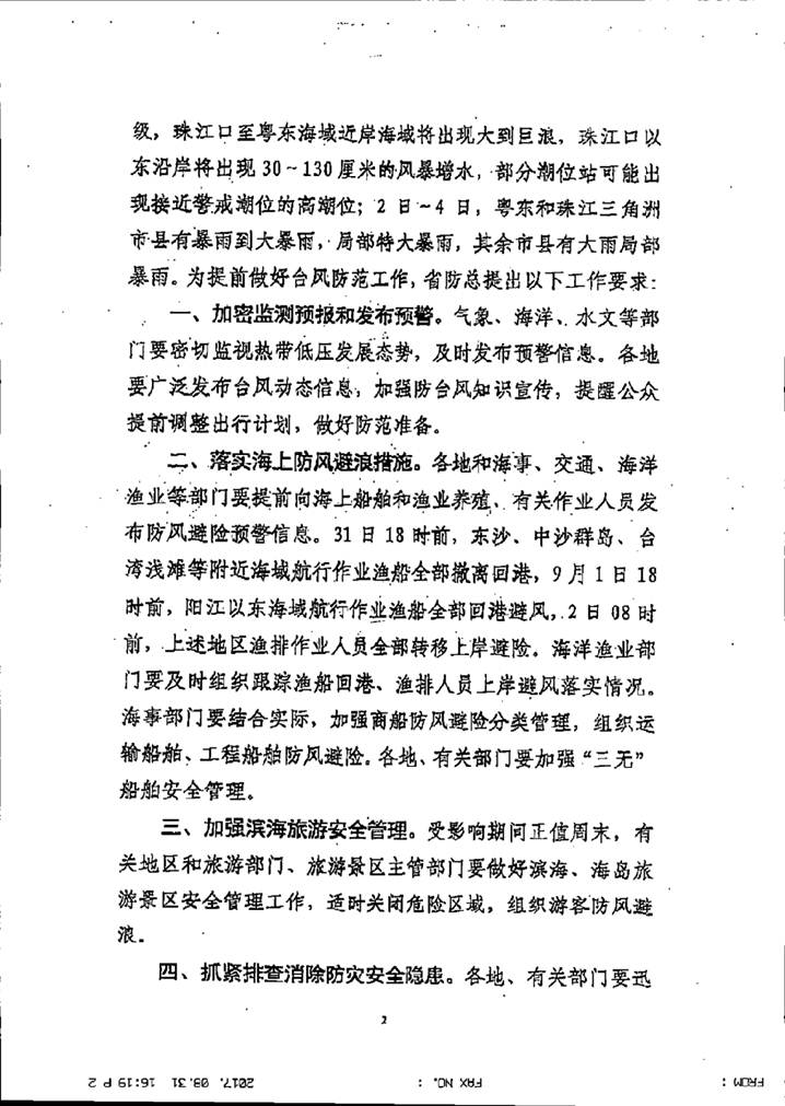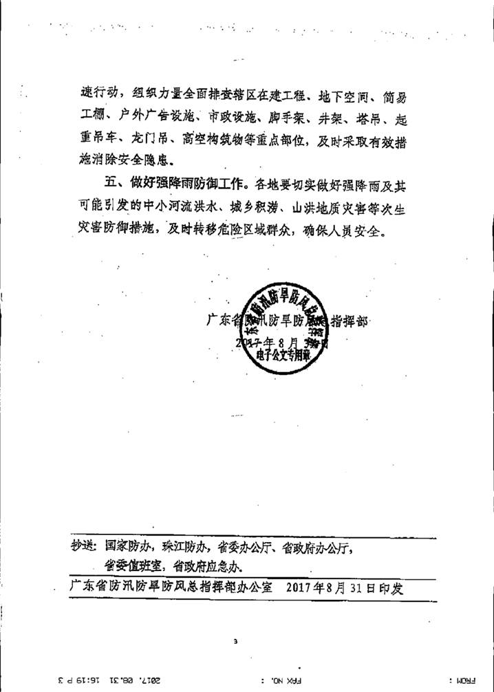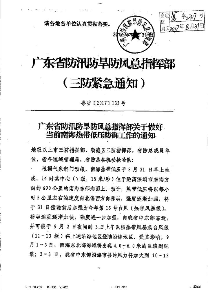 转发广东省防汛防旱防风总指挥部关于做好当前南海热带低压防御工作的通知,请各单位做好防御工作