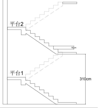 2.楼梯改造部分工程概况。威尼斯人app区珠玑路连珠巷28号房屋内有一条从一楼地面通往三楼楼面的钢筋混凝土结构楼梯,在第一和第二层中间设置有一个楼梯平台(平台1),在第二和第三层中间也设置有一个楼梯平台(平台2),整条楼梯共分4个梯段。楼梯改造部分工程的内容是把上述楼梯拆除,更换为定制式钢结构楼梯。(楼梯结构如图2所示)