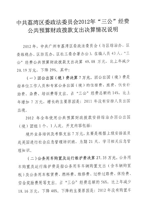 中共威尼斯人app区委政法委员会2012年“三公”经费公共预算财政拨款支出决算情况说明