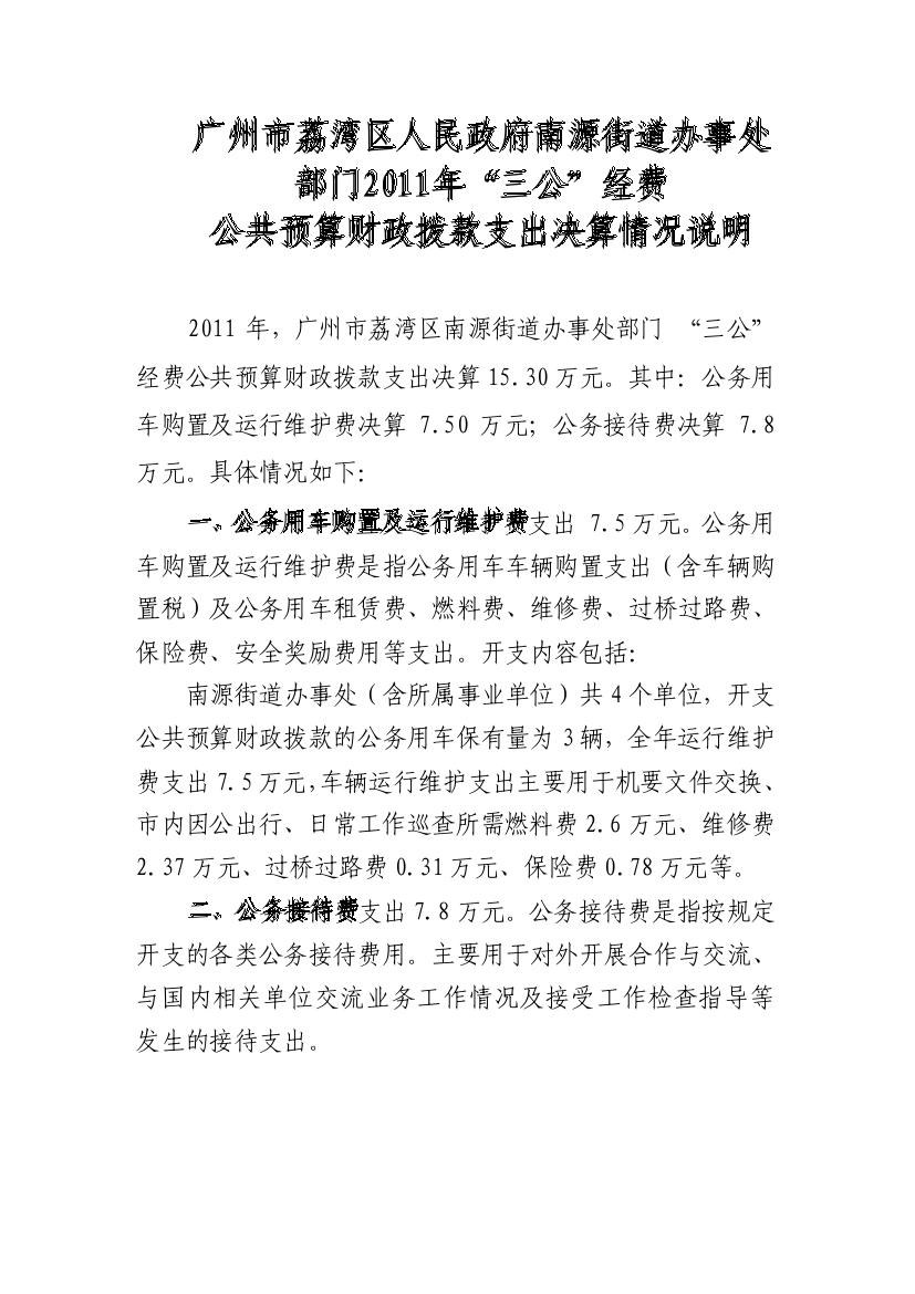 威尼斯人app南源街道办事处部门2011年“三公”经费公共预算财政拨款支出决算情况说明
