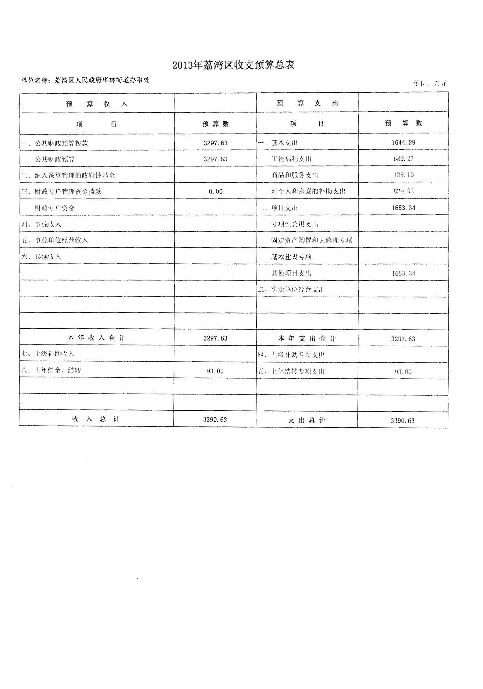 威尼斯人app区人民政府华林街道办事处2013年部门预算