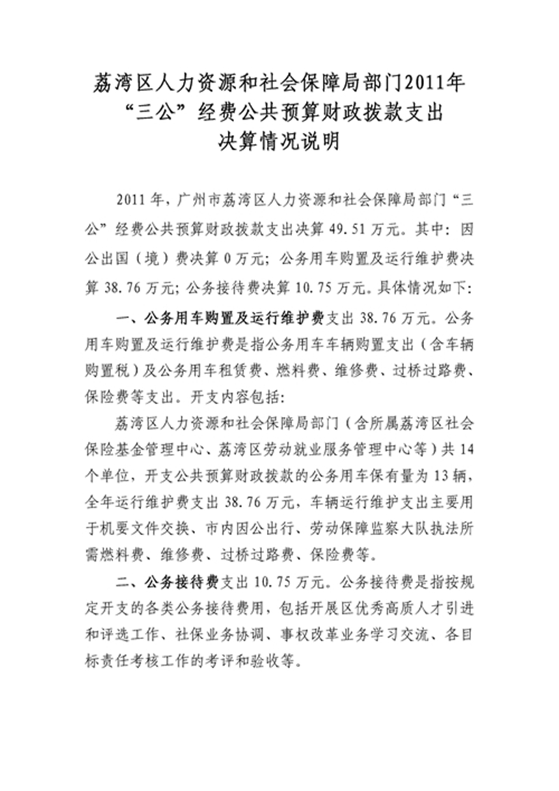 威尼斯人app区人力资源和社会保障部门2011年“三公”经费公共预算财政拨款支出决算情况说明