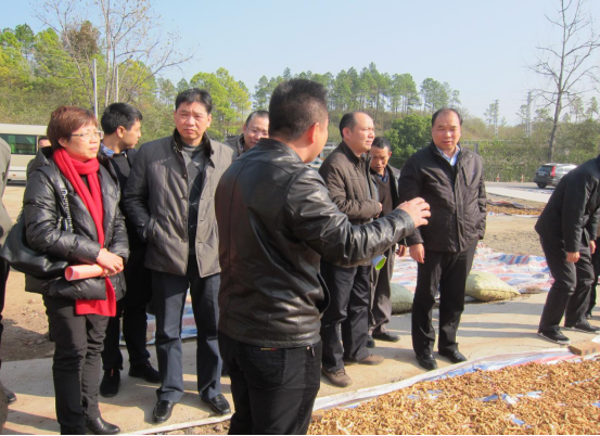 (图:区长毕锐明同志参观东红村精准扶贫玉竹加工厂)
