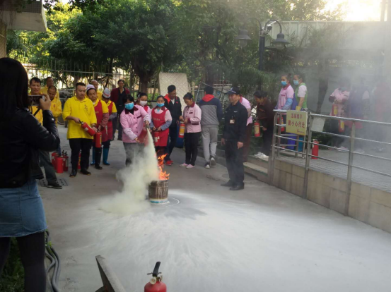 活动人员先是观看疏散演练视频,然后现场分组模拟应急疏散、现场救援和现场灭火等环节。各组按既定方案各负其责,达到预期效果。