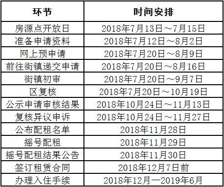 本次新就业无房职工(个人、家庭)公租房分配时间安排详见下表。
