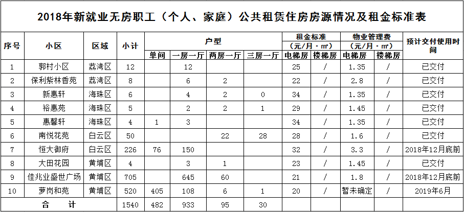 本次推出分配的公共租赁住房房源点共有10个,总套数为1540套,详见下表。