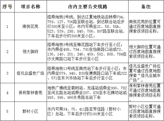 注:1.由于本次公租房房源开放点场地有限,现场不提供停车场地,请前往参观咨询的人员尽量乘坐公共交通出行。