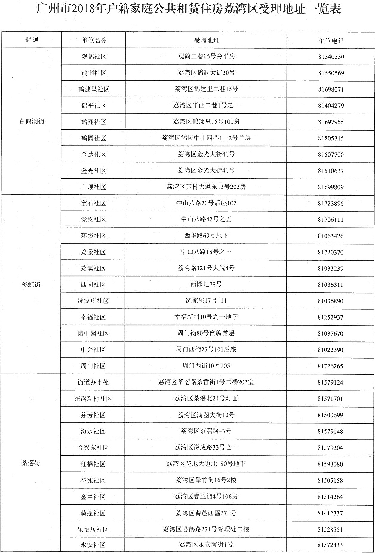 2018年户籍家庭意向登记受理点-威尼斯人app区受理地址一览表