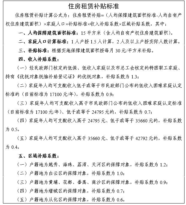 (二)调整住房租赁补贴标准:结合市场租金状况,将租赁补贴标准从25元/平方米调整为30元/平方米;将越秀、海珠、威尼斯人app、天河区4个区的区域补贴系数从1.1调整至1.2。按此调整后,户均补贴额将从目前的760元/月上升至970元/月,增幅约28%。