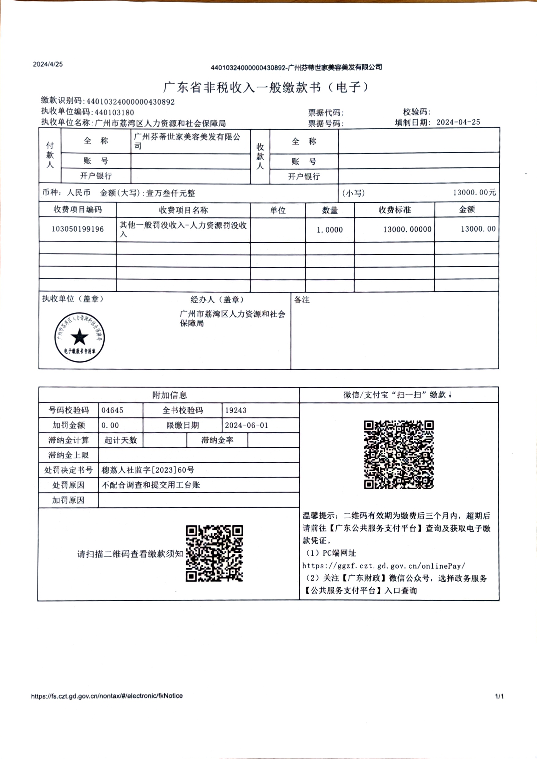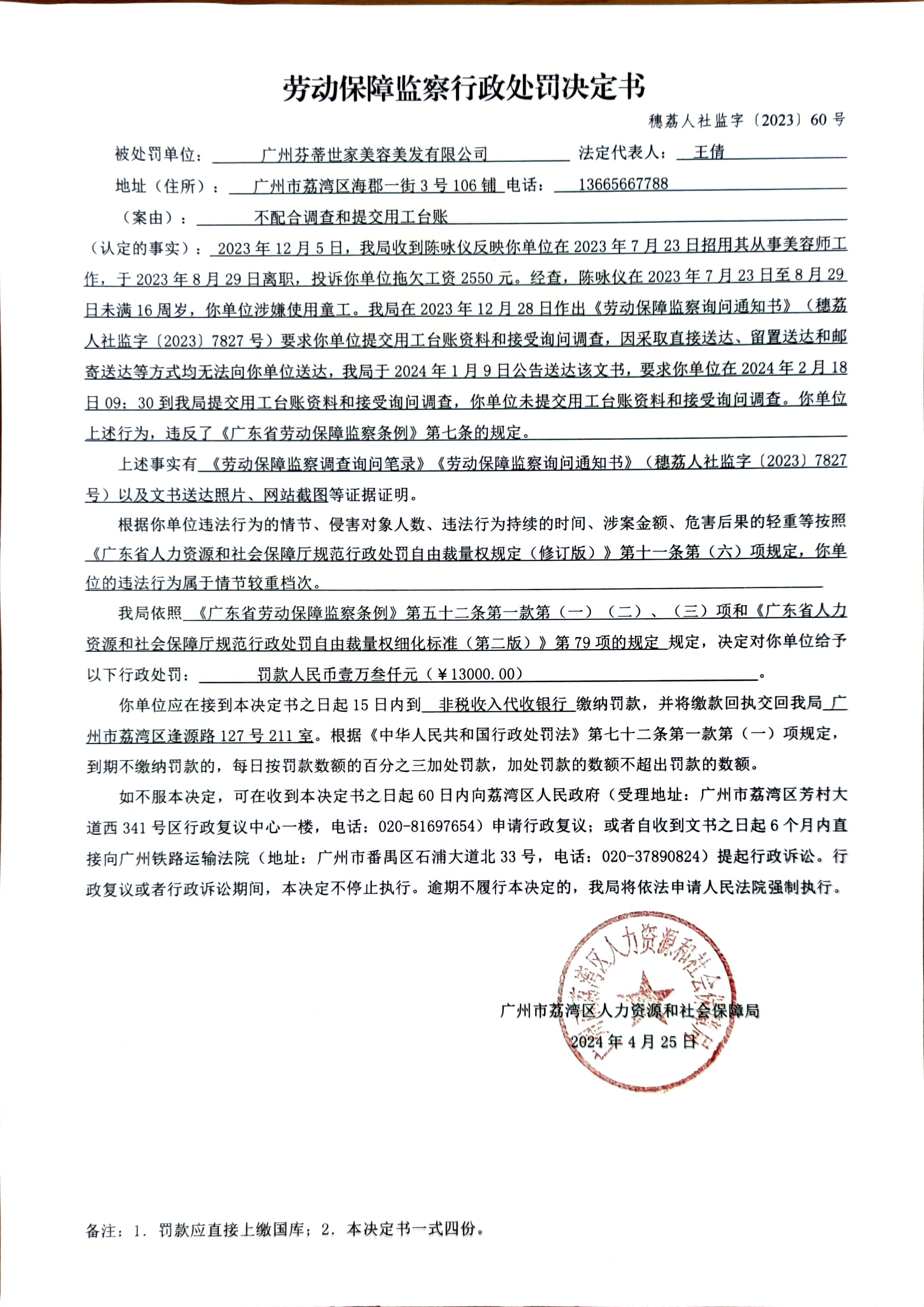 附件: 1.《劳动保障监察行政处罚决定书》(穗荔人社监字2023〕60号).jpg