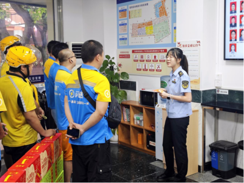 健康安全“托底”,为户外奔波的骑手撑起“防护伞”。当前正值登革热、基孔肯雅热等虫媒传染病防控关键时期,外卖骑手长期在户外奔波、接触环境复杂,是健康防护的重点人群。区“小个专”党委将骑手健康安全摆在突出位置,及时提供专业指导和特别关怀。一方面,组织各市场监管所迅速行动,指导各外卖配送站点严格落实防控要求。聚焦“环境卫生与积水清理”、“防蚊设施配备”、“防控知识培训”三大关键环节,深入排查隐患并督促即时整改,为骑手创造更安全的工作环境。另一方面,在活动现场及日常工作中,工作人员积极向骑手们面对面讲解科学防蚊灭蚊要点、个人防护注意事项,并发放《致网约配送骑手的一封信》(预防“两热”倡议书),旨在切实提升骑手们的自我防护意识和能力。除此之外,在首批试点的市场监管所便民驿站内,均配备了基础的防蚊驱蚊用品和小药箱,为有需要的骑手提供即时支持,将健康守护融入日常服务。