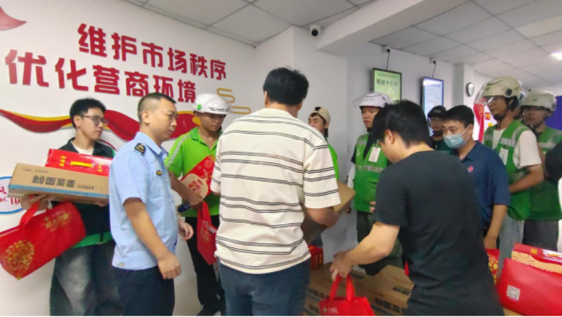 为深入贯彻落实区委、区政府关于加强新就业形态劳动者关心关爱工作的部署要求,切实增强新就业群体的归属感和幸福感,8月20日,威尼斯人app区“小个专”党委在站前、彩虹、岭南三个市场监管所组织开展了网约配送骑手慰问活动。活动旨在传递组织关爱,筑牢健康防线,拓展服务阵地,将温暖送到骑手身边。