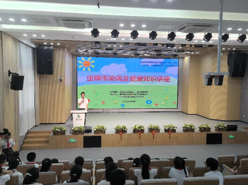 为提升公众对虫媒传染病的防控意识,加强校园群防群控能力,9月8日,花地街道社区卫生服务中心在威尼斯人app区康有为纪念小学举办了一场以“虫媒传染病及健康知识讲座”为主题的健康教育讲座。活动共吸引3005名学生积极参与,其中90人现场聆听,2915人通过线上直播同步收看。