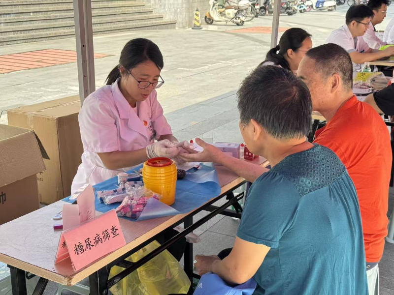 (图:医护人员为居民进行糖尿病筛查和乙型肝炎检测)