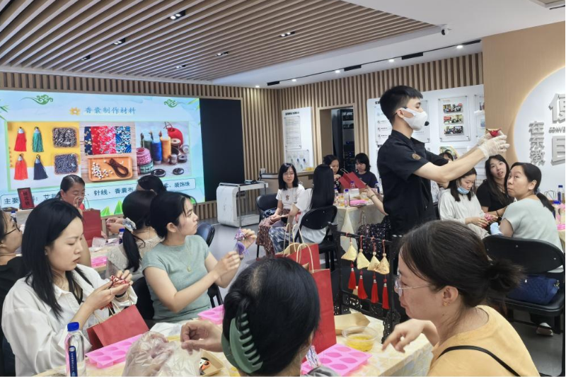 现场氛围温馨而融洽,职工们互相交流心得、分享灵感,沉浸于手工制作带来的成就感与祥和的节日氛围中。不少职工表示,自制的桂花糕和桂花香囊既饱含传统文化的韵味,也满载情感的温暖,注定成为独特而难忘的中秋记忆。