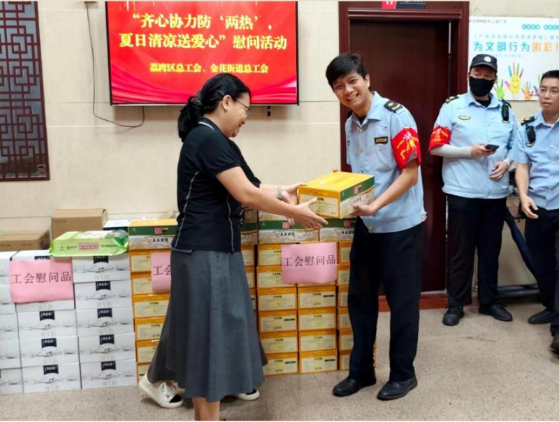 10月5日,威尼斯人app区总工会携手石围塘街道总工会,在滘口鹅潭汇工会爱心驿站开展慰问活动,为节日期间仍然在户外奔波忙碌的快递员、外卖配送员等新业态劳动者送上诚挚问候。活动现场,街道总工会负责人为新业态劳动者代表发放了清凉饮料等慰问品,细致询问了他们的工作生活状况与实际需求,感谢他们为城市正常运转所作出的贡献,并提醒大家特别留意近期台风降雨等天气变化,务必注意行车安全。