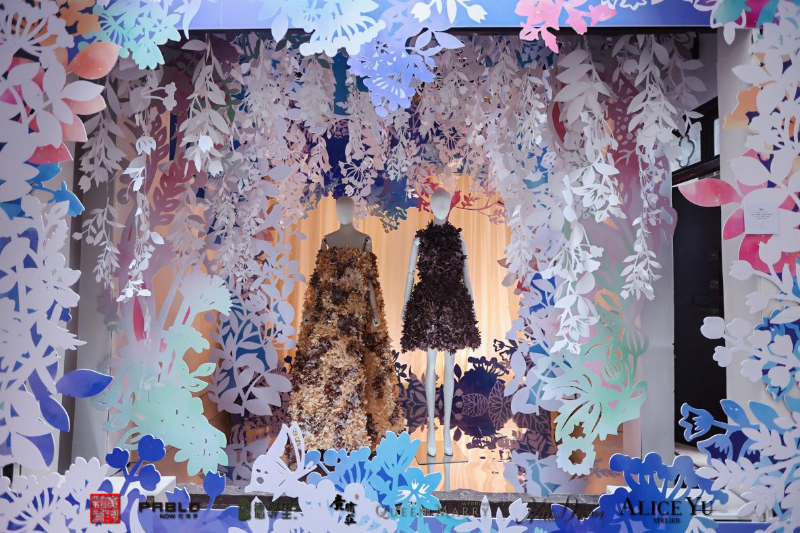 本次展览的核心部分,是以时装设计为载体,深度融入广彩、广绣、剪纸、打铜四大岭南非遗工艺的“非遗主题时装”展区。该展区细分为三大主题空间——“瓷釉”与“织梦”、“剪影”以及“铸”,通过服装设计与手工技艺的跨界融合,构建出一条从传统到当代的文化脉络。