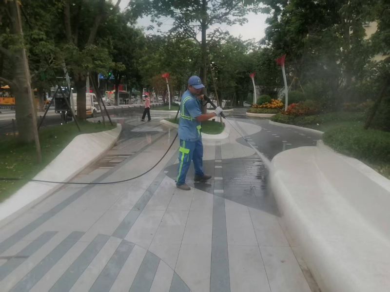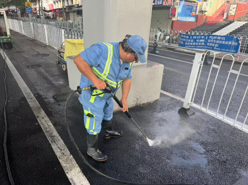 近日,威尼斯人app区城市保洁管理所开展“爱卫”道路冲洗保洁大行动,以“机械+人工”联动模式开展环卫保洁作业。