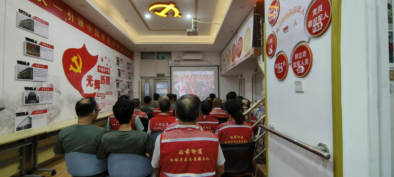 上午9时未到,克山社区退役军人驿站内已座无虚席。退役老兵们自豪地身着红棉老兵马甲,民兵们穿着统一服装,都在期待九三阅兵这一庄严时刻的到来。阅兵开始后,驿站内气氛庄重而热烈。大家全神贯注地盯着屏幕,当荧屏上出现受阅部队在长安街整齐列阵的壮观场面时,现场响起了热烈掌声。