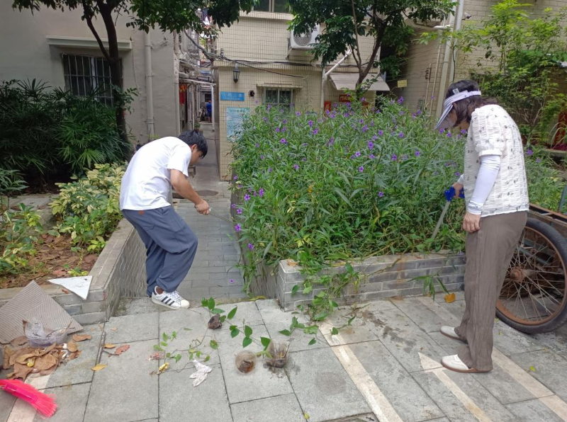 党员志愿红,刷除青苔保畅通。幸福新村87至93号大院内巷布满了青苔,居民出入容易摔跤,“民有所呼,我有所应”,幸福社区动员辖区党员志愿者10余名,一起刷洗路面青苔,共建“去青苔、除隐患、环境美、齐共享”洁净家园;汗水湿马甲,花香润民心。宝石社区联合广州市生态环境局威尼斯人app分局走进邻里花园,对荔溪南约新街20号后座区域,拔杂草、清垃圾、清藤蔓,将20余盆花卉重新摆放成“靓丽微花园”;缝隙也清爽,安心又舒心,西园社区组织落点领导、干部、志愿者深入花坛砖缝、井盖边缘,抠出烟蒂、纸屑、塑料袋等“隐形垃圾”,切断病媒孳生链,细微之处见真章,爱卫行动让社区角角落落都洁净。