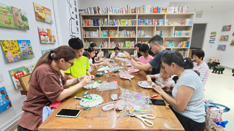 首先开展的是探秘非遗手工蒲扇技艺活动。活动中,工作人员向孩子们详细介绍了蒲扇的历史渊源、民俗内涵以及制作方法等知识。孩子们拿起竹篾、蒲叶认真编织,在一针一线的实践中,亲身感受传统工艺的魅力,体悟到匠人专注坚守的精神。