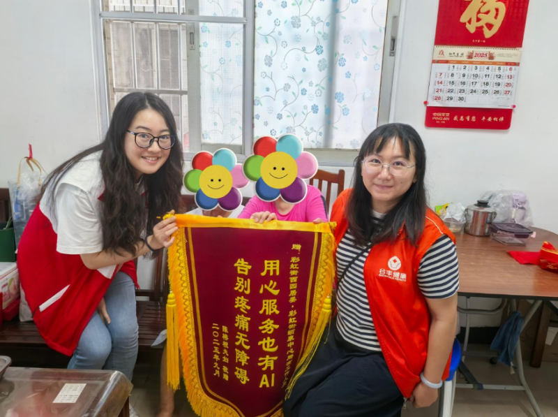 优质服务赢得居民真心认可,陈叔夫妇便是直接受益者。此前两人受身体疼痛困扰,经过一段时间的上门中医护理,不适症状显著改善。为表达感谢,他们特意定制锦旗赠予西园社区及颐康中心,“用心服务也有AI,告别疼痛无障碍”的字样,既是对服务专业性的肯定,也是对社区关怀的暖心回应。