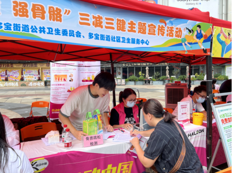 活动现场设置三大特色健康服务区:在“管体重 强骨骼”三减三健主题摊位,多宝街道社区卫生服务中心中医减重门诊医师为居民提供体质辨识、膳食指导及中医适宜技术体验,现场还提供免费骨密度检测,让居民了解自身骨骼情况;“咬得动 吃得香”口腔义诊服务摊位,广医口腔威尼斯人app分院专家们为居民进行免费口腔检查,并针对儿童防龋、老年人义齿护理等问题开展个性化指导;“多元素”免费检测服务,多宝街道社区卫生服务中心的医生为居民提供免费肝炎筛查,只需采集指尖血,无需空腹,20分钟就能出结果。还有尿酸检测,早筛早治,让疾病无所遁形。