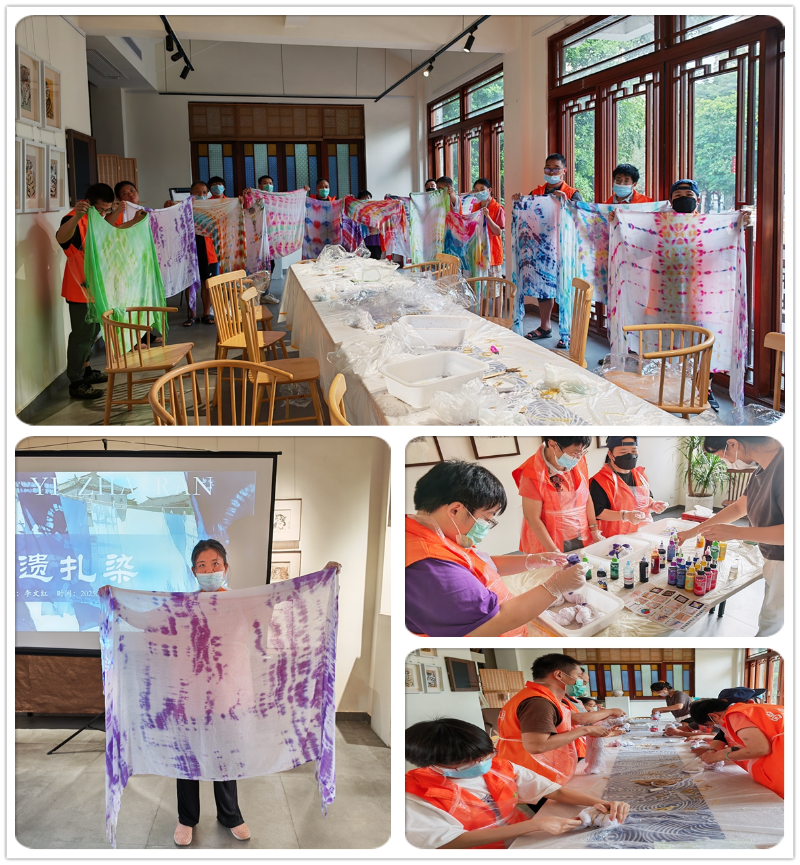 围巾扎染体验则更添趣味。老师先示范“拧麻花”“折方块”等简单捆扎手法,告诉大家“每一种折法都会开出不一样的‘花’”。学员们在老师的帮助下,将纯白围巾捏出喜欢的形状,用棉线轻轻捆好,再放进温和的染料中浸泡。等待显色的过程中,有人好奇地观察染料变化,有人兴奋地和同伴分享自己的“设计思路”。当解开棉线,看到围巾上浮现出灵动的纹路时,现场响起阵阵欢呼,大家纷纷捧着专属围巾,感受手作带来的惊喜。课程结束时,大家带着亲手制作的点蓝饰品和扎染围巾满载而归。这些凝聚着心意的手作,不仅是独一无二的纪念品,更成为他们探索自我、拥抱生活的“星光”,照亮了属于自己的精彩日常。