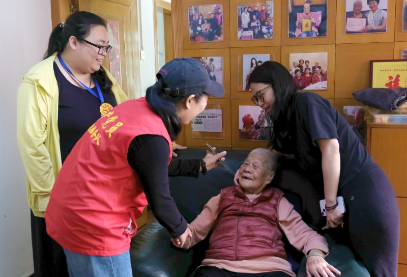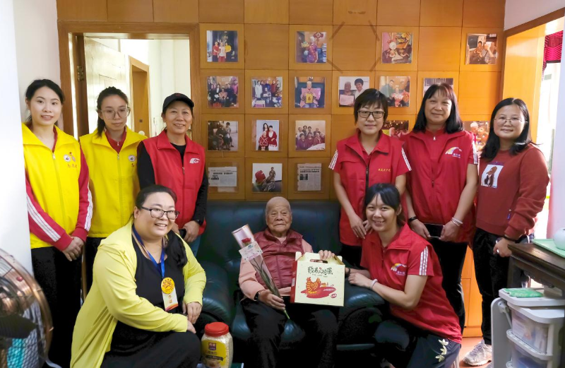 在慰问的老人当中,有已经80岁的老楼长,她对从前大楼、社区的事情如数家珍,有94岁的老党员,他声音依旧洪亮,腿脚灵活;还有一位爱国的归国华侨,已经百岁高龄的她精神奕奕,思维敏捷,岁月在她的脸庞留下细密的纹路,却也沉淀出乐观豁达的气质。那眼角的细纹,是笑对生活的温柔印记;那额头的浅痕,藏着历经世事的从容智慧。每一道褶皱里都裹着故事,每一寸肌肤都透着时光打磨后的沉静与通透,仿佛诉说着在那个风雨飘摇的年代,民族危难之际,一个坚毅的华侨少女毅然投身救国救亡第一线的故事,在历时洪流中留下不可磨灭的印记。