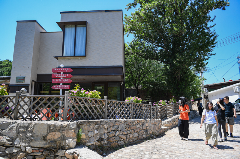 游客在北京延庆石峡村观光(2024年6月1日摄)。